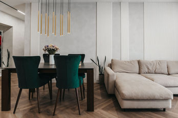 У цьому проекті кухні ми поєднали теплі відтінки з акцентами золотого декору та насиченою зеленою. Таке поєднання створює затишну та елегантну атмосферу, де кожна деталь додає стилю та розкіші.