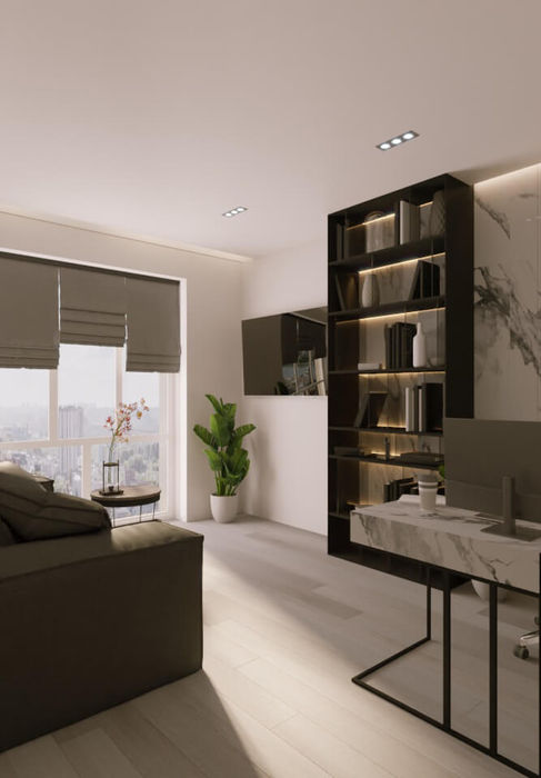Ця квартира була розроблена для молодої пари. Наша мета - створити для них простір, який відображає їх стиль та потреби, надаючи комфорт та функціональність в повсякденному житті. Ми зосередилися на створенні сучасного та стильного інтер'єру.