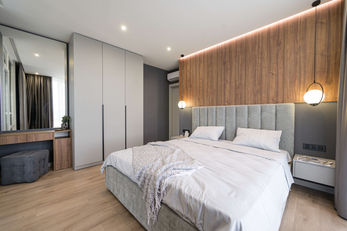 Велика спальня - справжнє втілення затишку та комфорту. З акцентом у вигляді фотошпалер за ізголів'ям вона створює відчуття розкоші та оригінальності.