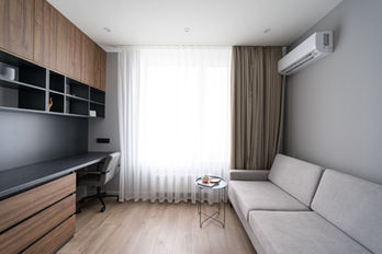 Кабінет у спокійних сірих відтінках забезпечить тихе і зосереджене місце для роботи або вивчання.