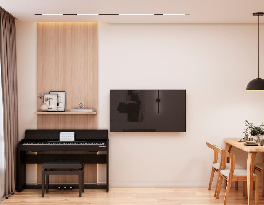 Однією з наших задач було розташувати піаніно у вітальні для заняття музикою. Ми ретельно продумали його місце, забезпечивши оптимальні умови для гри та слухання музики. Це дозволяє власникам насолоджуватися музикою прямо у домі, створюючи атмосферу творчості.